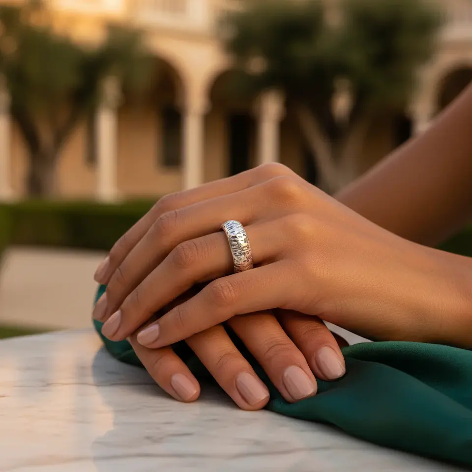 "925 Silver Hammered Resizable Wedding Band Ring for Women-Minimalist Religious Gift"