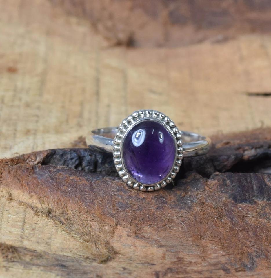 925 Silver Handmade Women's Fine Ring with Amethyst Oval Cut Gemstone Direct Source for Wedding Daily Wear