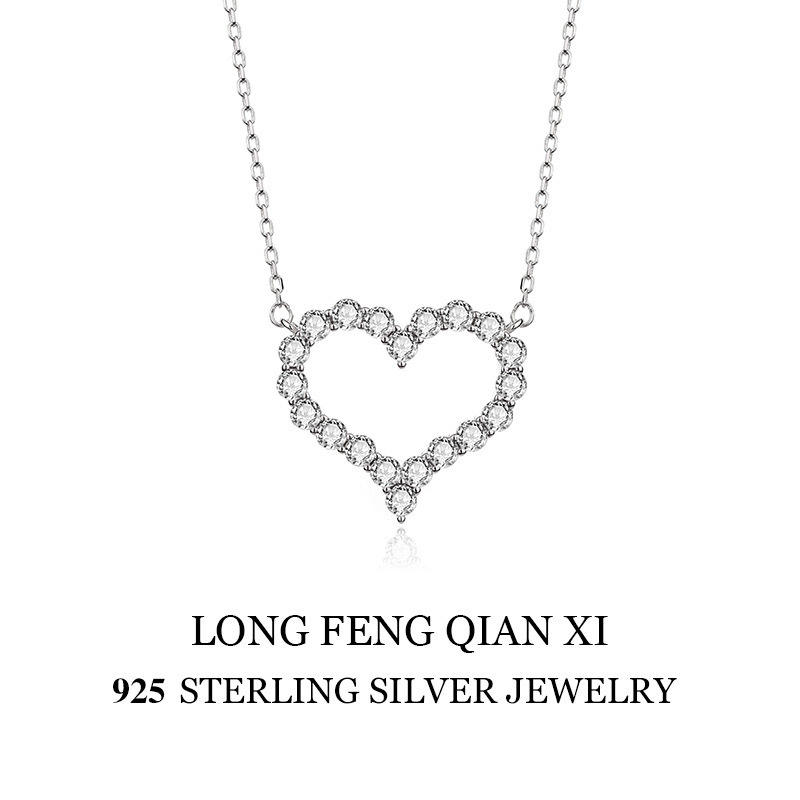 925 Sterling Silver Peach Heart Necklace Full Pave Shine Moissanite Clavicle Chain Trendy Minimalist Valentine's Day Gift