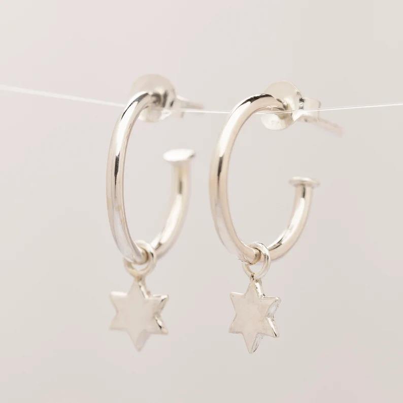 925 Silver Hoop Studs Star Charms Design Earrings Wholesale Sterling Silver Earrings Handmade Jewelry for Women Girls Indian