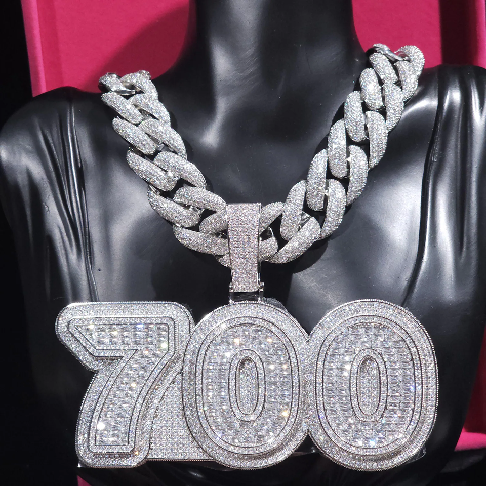 925 Silver Iced Out 700 Number Pendant Moissanite Diamonds Fully Paved Hip Hop Statement Pendant For Men Women