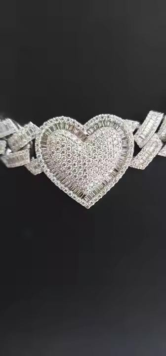 925 Silver Iced Out Heart Cuban Link Chain with Shinny Moissanite Diamond Perfect Birthday Gift for Necklaces