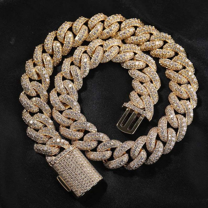 925 Silver Iced Out Moissanite Round Cut Miami Cuban Link Chain Necklace Hip Hop Fine Jewelry Rapper Fashion Party For Mens