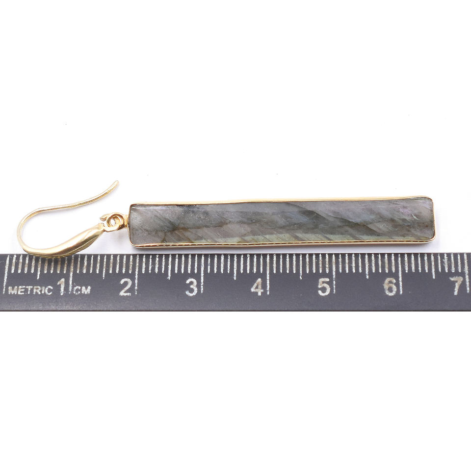 925 Silver Labradorite Earrings 63-64mm Rectangle Shape Ear Wire 14K Gold Plated Bezel