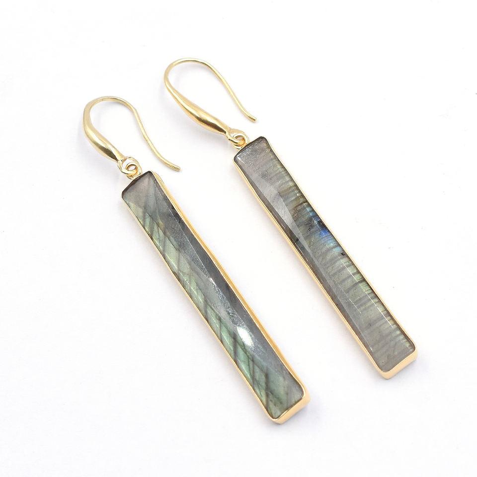 Labradorite Rectangle Shape Gold Plated Earring