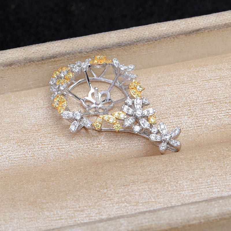 925 Silver Luxury Color-Separated Patterned Base DIY Accessory Semi-Finished Pearl Pendant JG5866 for Jewelry Making