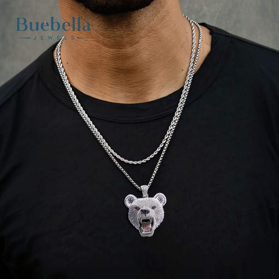 925 Silver Luxury Iced Out Iced Roaring Bear Head Pendant Necklace Men Rapper Style Diamond Bling Jewelry