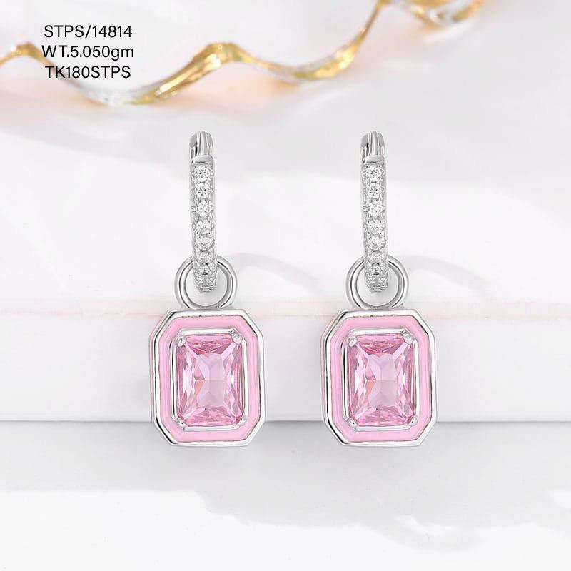 925 Silver Luxury Purple Crystal Jewellery Cz Set Earring Colourful Enamel Huggie Earring Gold Plated Pendant Earrings for Women