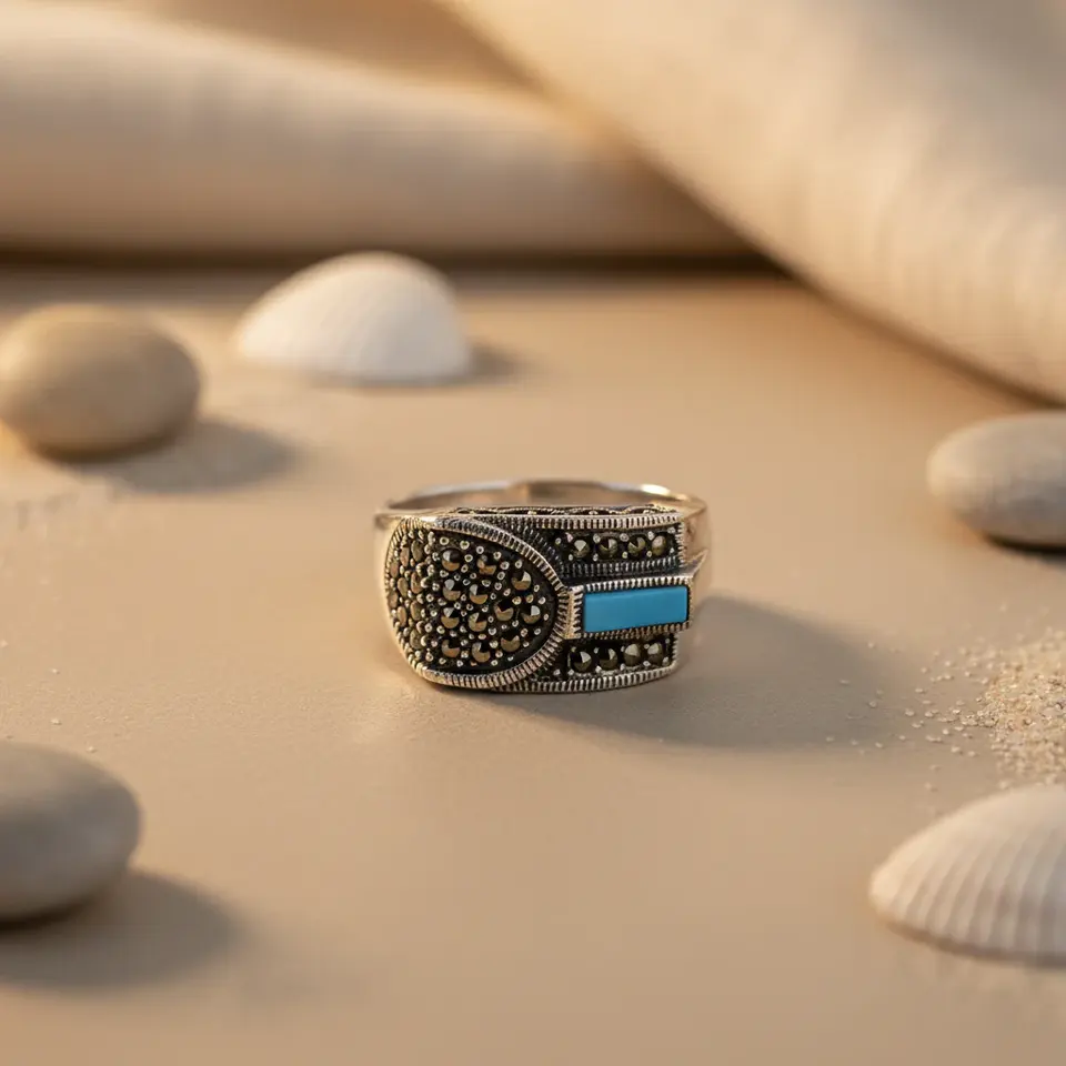 925 Sterling Silver,Marcasite,Turquoise