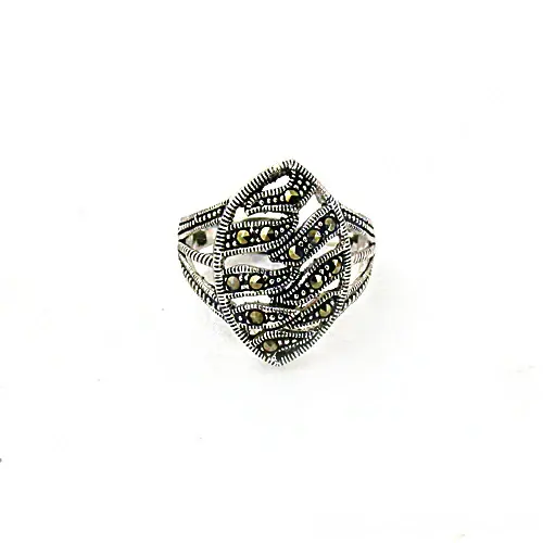 925 Silver Marcasite Statement Fashion Ring for Women Elegant Jewelry
