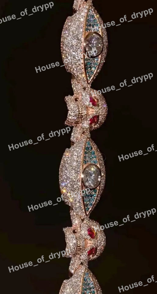925 Silver Moissanite Diamond Skull Design Bracelet With Red And Blue Stone Accents Diamond Look Pave Setting Statement Jewelry