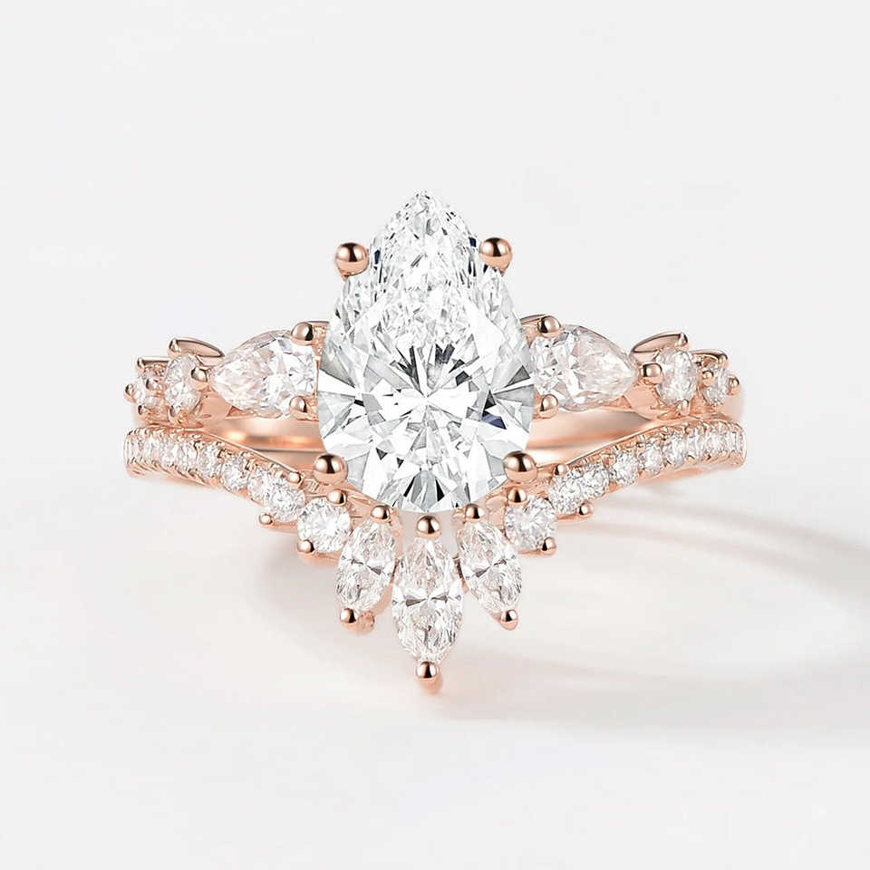 925 Silver Moissanite Pear Cut Vintage Wedding Ring Set Elegant Fine Jewelry for Brides Tishya Diamond