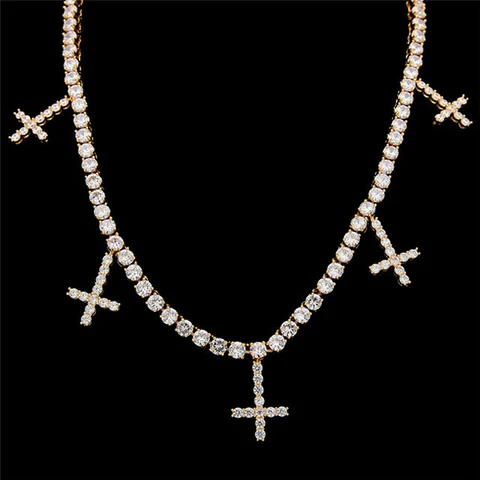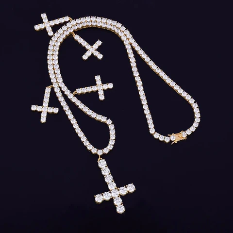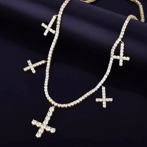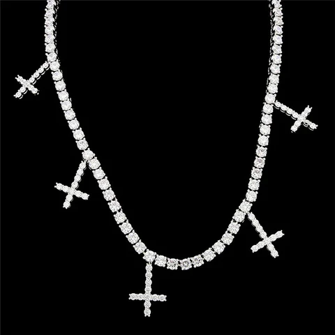 925 Silver Moissanite VVS Upside Down Cross Stone Hip Hop Link Chain Necklace with Rose Gold Plated Finish