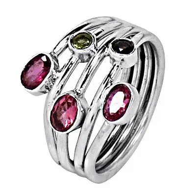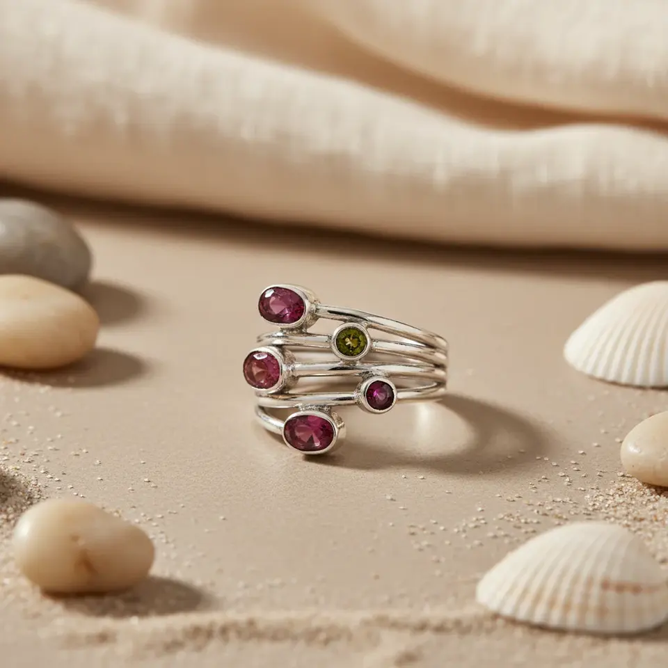 925 Silver Multi-Gemstone Statement Ring for Women Fashion Rings