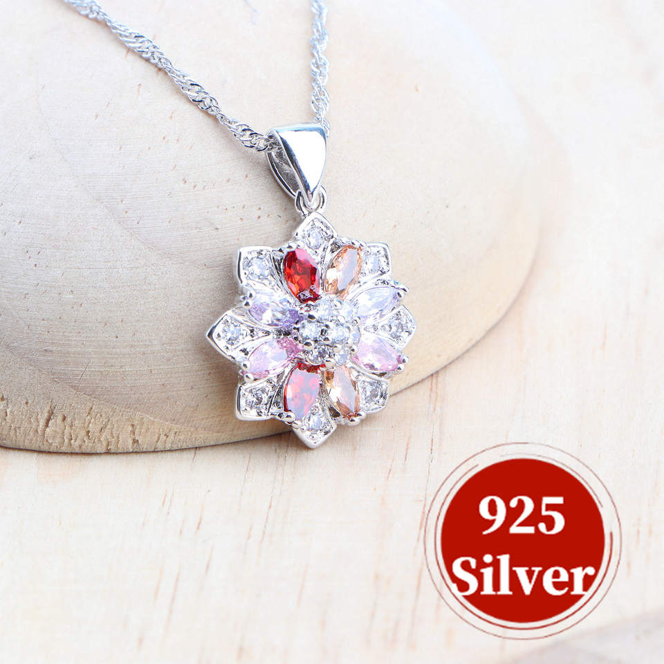925 Silver MultiColor Topaz Jewelry Sets for Women Wedding Cubic Zircon Bridal Stones Earrings Ring Pendant Necklace Set