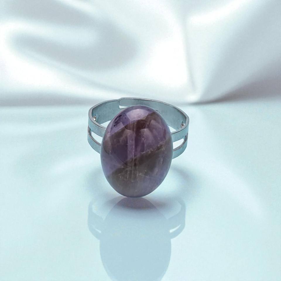 925 Silver Natural Amethyst Birthstone 10x14 MM Oval Cabochon Ring