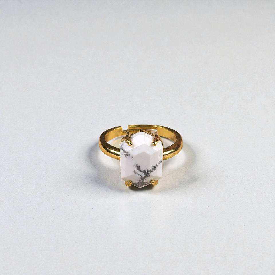 925 Silver Natural Hexagon Howlite Gemstone Ring — 10x14mm Geometric Gemstone Ring - Modern Statement Ring