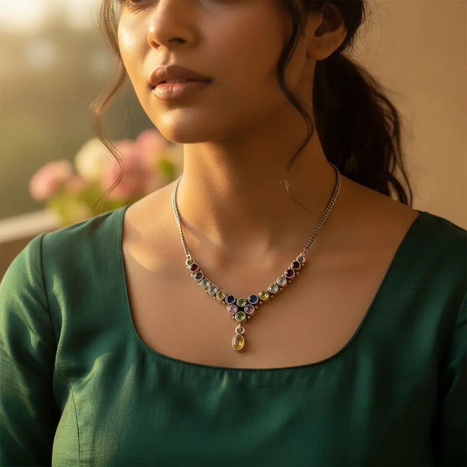 925 Silver Necklace Colorful Gemstones for Women Religious Style Featuring Sapphire Turquoise Coral Agate Quartz Perfect Gift