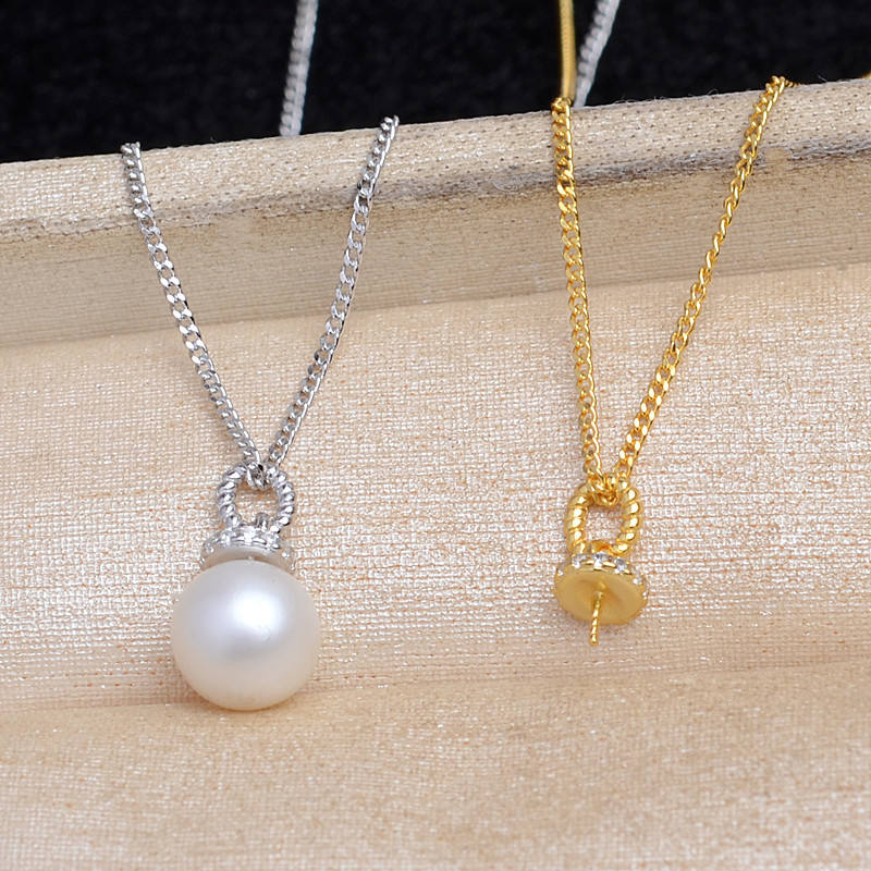 925 Silver Necklace Empty Holder DIY Accessories for Pearl Jewelry Simple Nipple Buckle Jewelry Findings Components