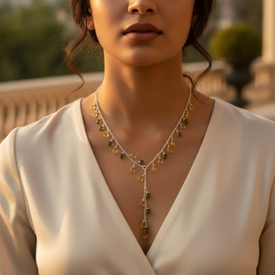 925 Silver Necklace with Emerald Sapphire Zircon Gems Rhodium Plated Trendy Box Chain for Women's Daily Wear