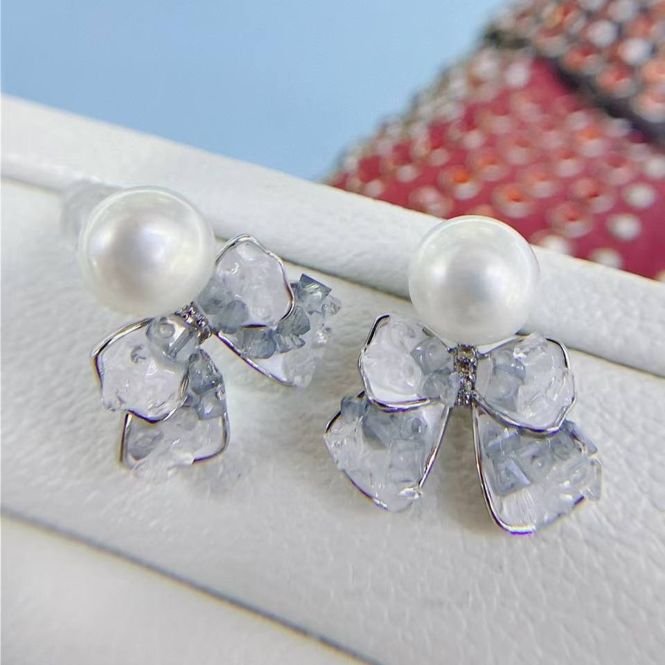 925 Silver Needle Korean Niche Design High-End Luxury Bow Earrings with Crystal Pearl Light Feel Temperament Pearl Earrings