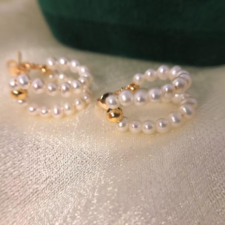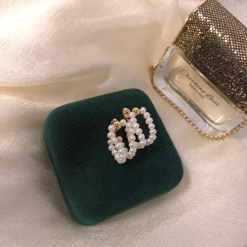 925 Silver Needle Pearl Circle Earrings for Women Retro Attractive and Versatile Stylish Design Internet Famous Accessory