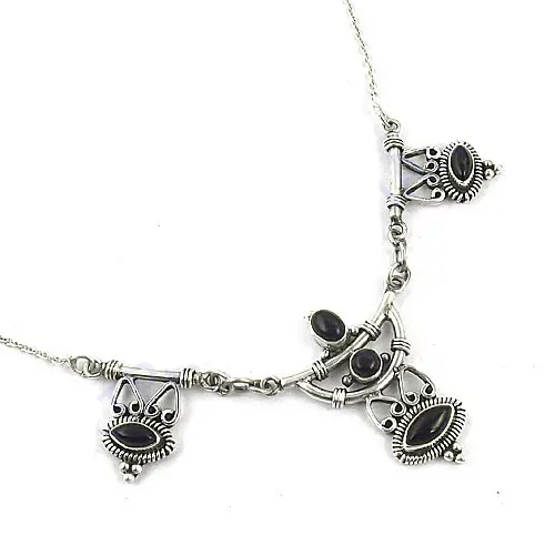 925 Silver Onyx Beaded Necklace for Women Fashion Jewelry