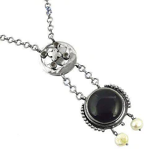 925 Silver Onyx Pearl Necklace for Women Statement Jewelry