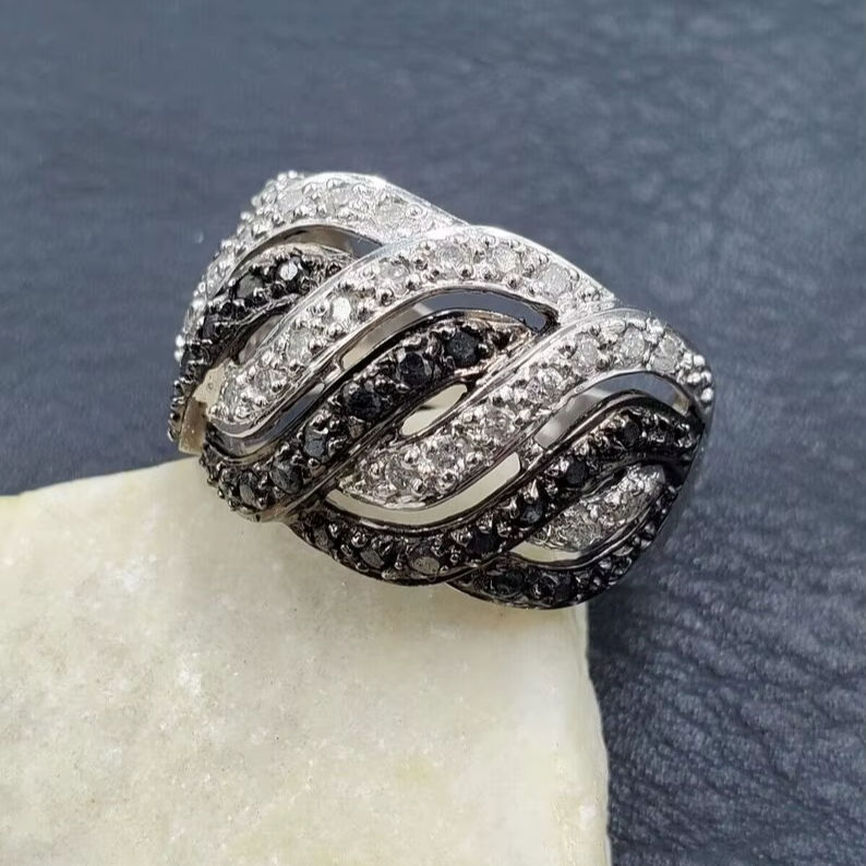 925 Silver Original Moissanite Black and White Round Cut Diamond Crossover Ring Birthdays Gift Jewelry For Best Friends
