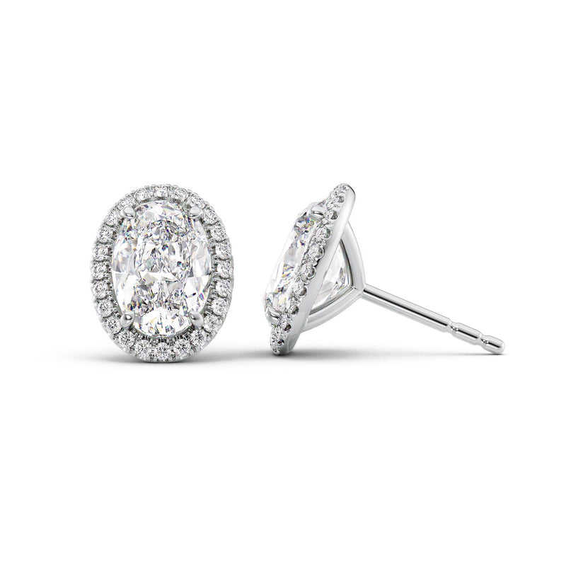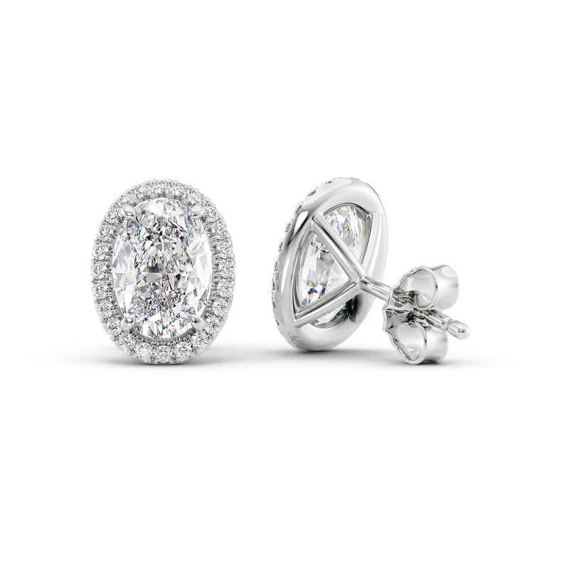 925 Silver Oval Cut Halo Stud Earrings With Diamond Look Stones Classic Sparkling Jewelry For Women Elegant Daily Wear Gift