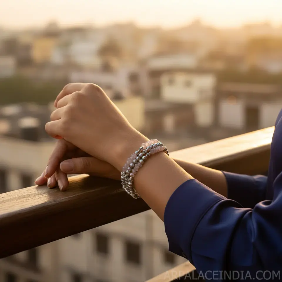 925 Silver Pearl & Rose Quartz Bracelet for Women Elegantly Designed Handmade Pearl Bangles Gift Idea