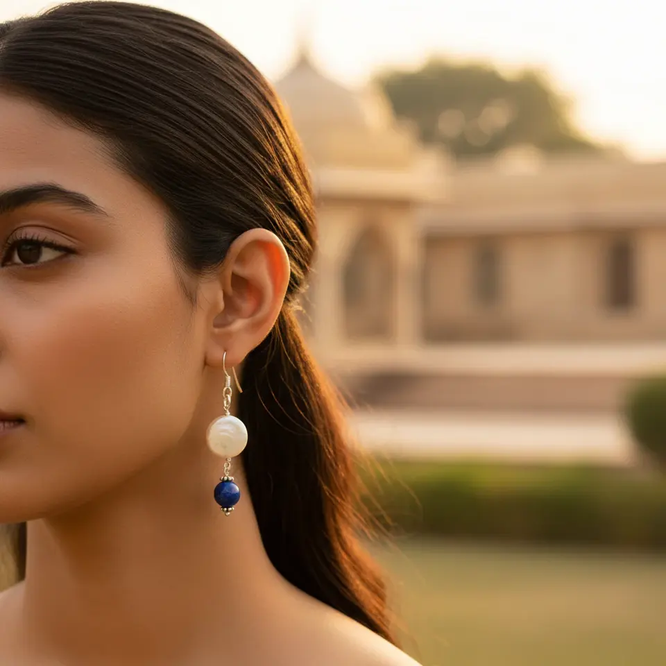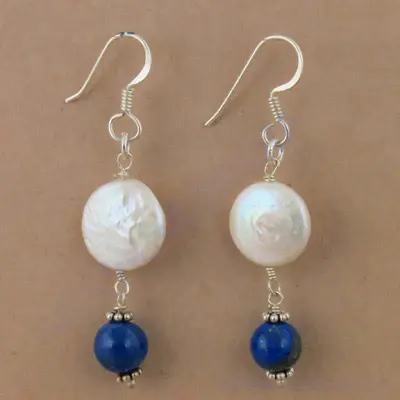 925 Silver Pearl and Lapis Earrings for Women Gift Product