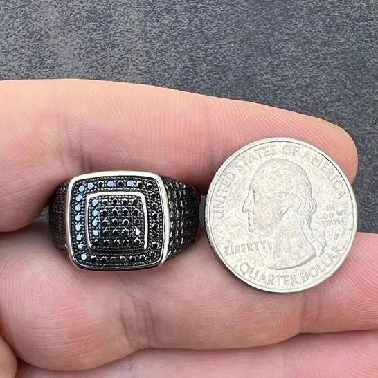 925 Silver Plated Gorgeous Black Diamond Ring Black Moissante Everyday Classic Square Ring for Men's Fashion Jewelry