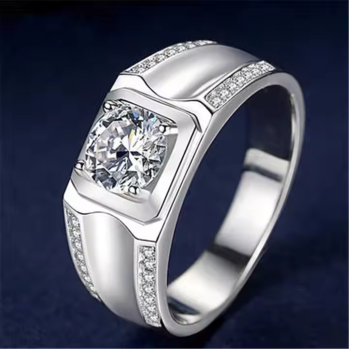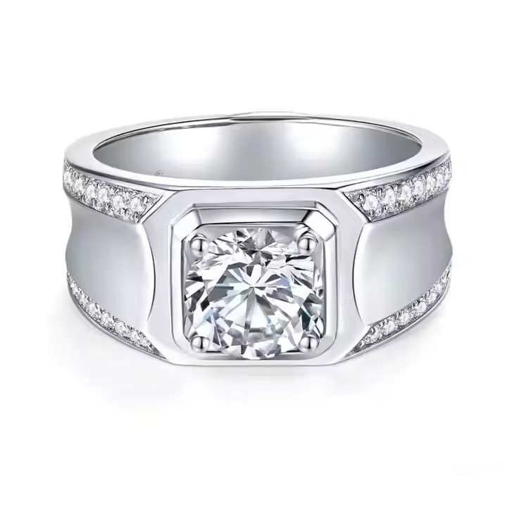 925 Silver Plated Moissanite Diamond Men's Ring Bold Style Everyday Elegance with Round Cut Stone Fine Rings Product Category