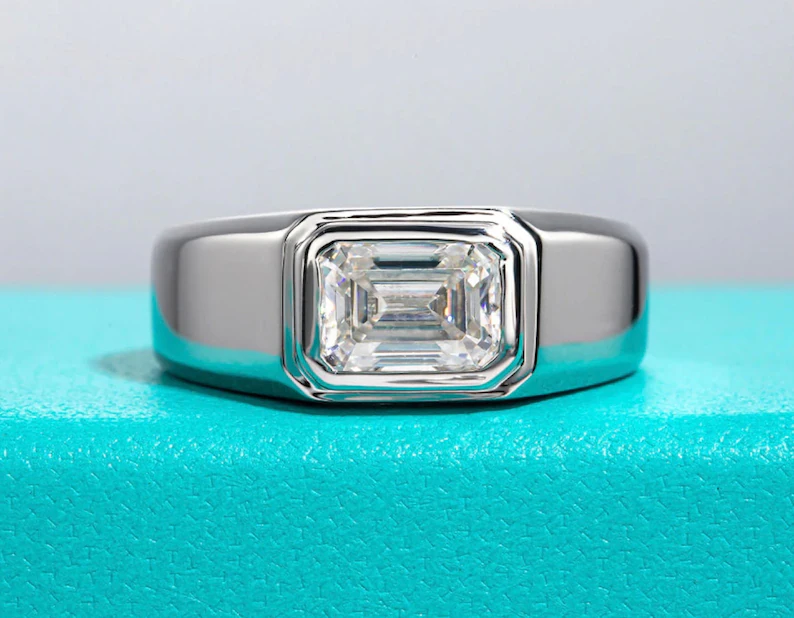 925 Silver Plated Moissanite Men's Ring Bold Style Wedding Engagement Everyday Elegance with Round Cut Stone Fine Rings