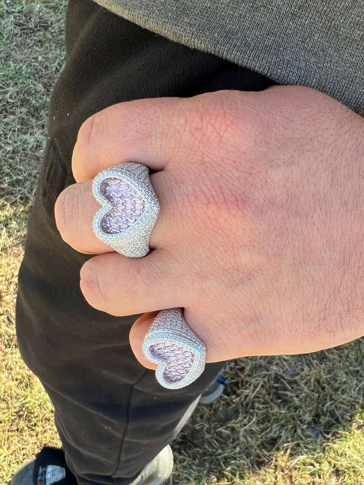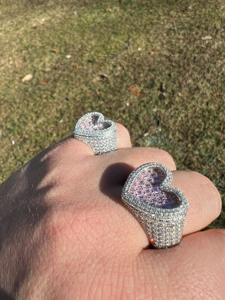 925 Silver Plated Pink Heart Iced Out Ring for Women Fine Quality Stainless Steel Cut Diamond Baguette Round CZ Stone Parties