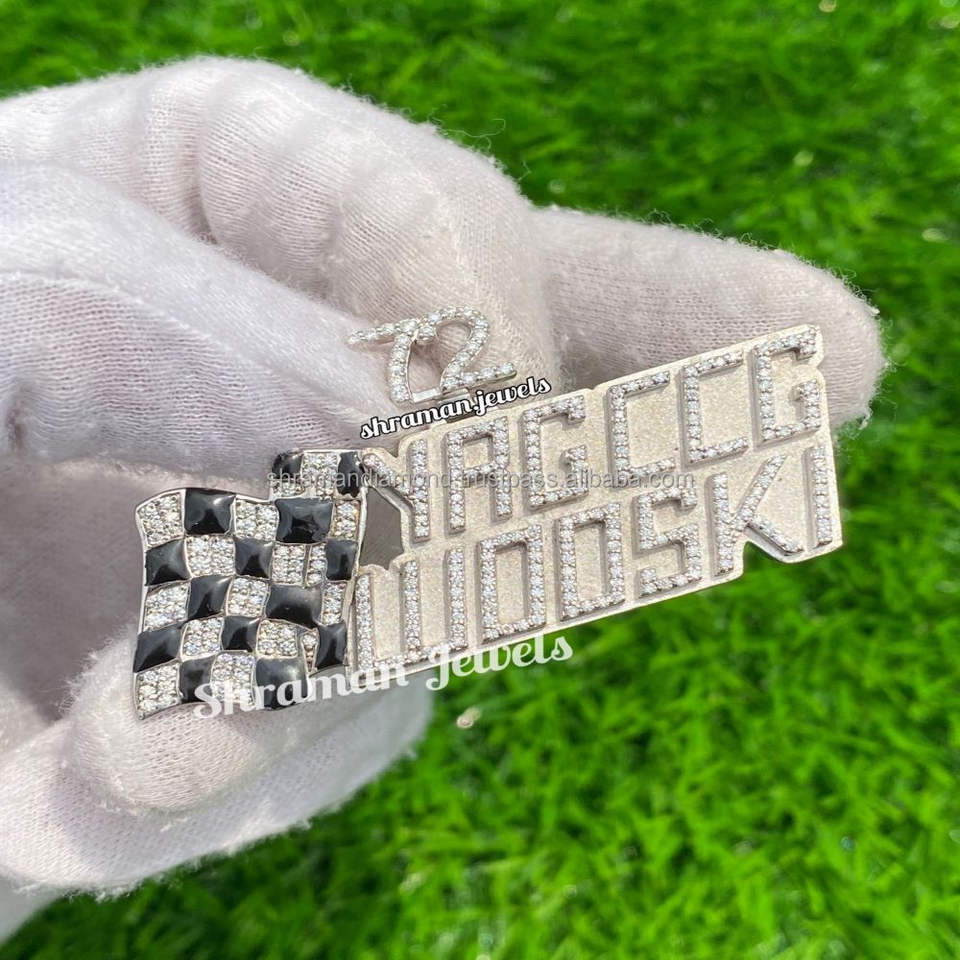 925 Silver Racing Flag Design Lab Grown Diamond Pendant Custom Nameplate Sports Charms for Men Iced Bling Enamel Hip hop Style