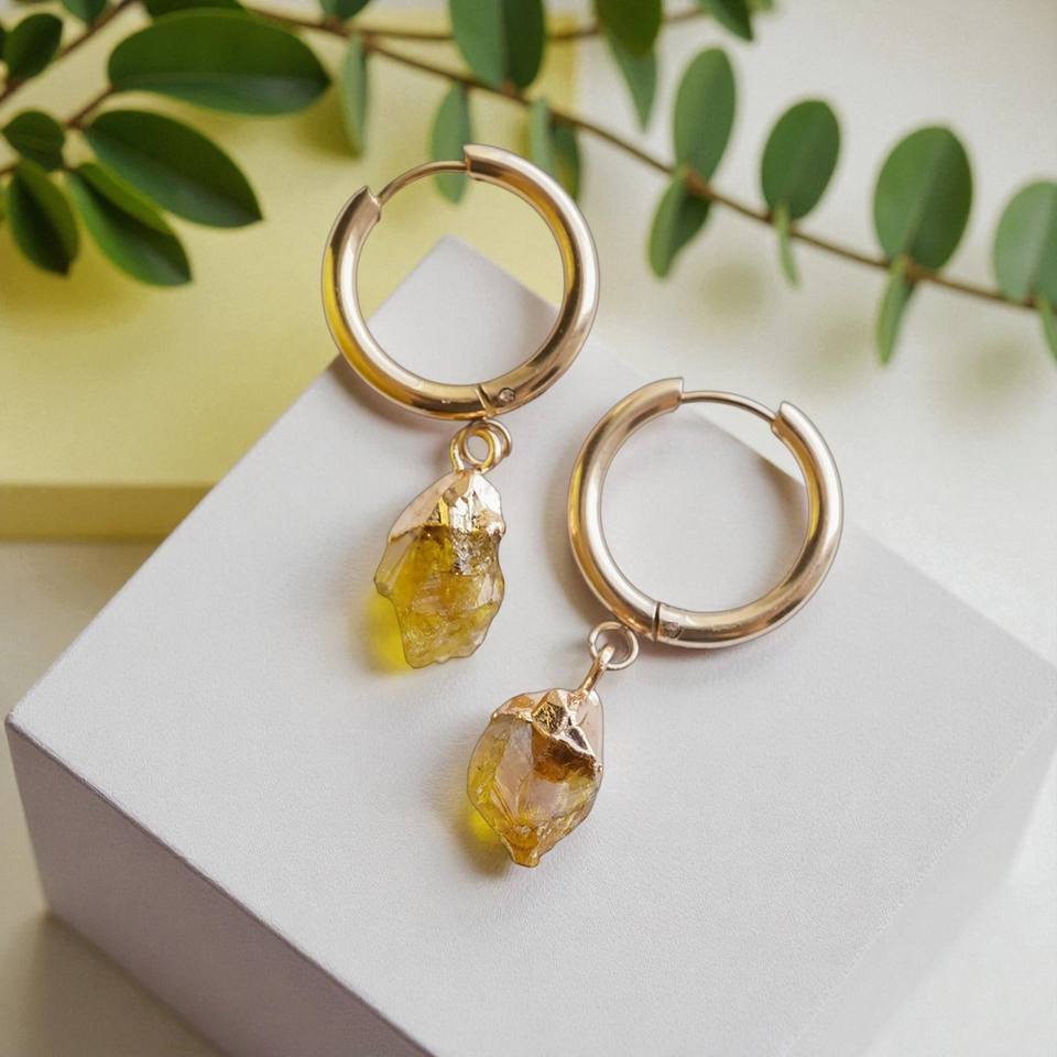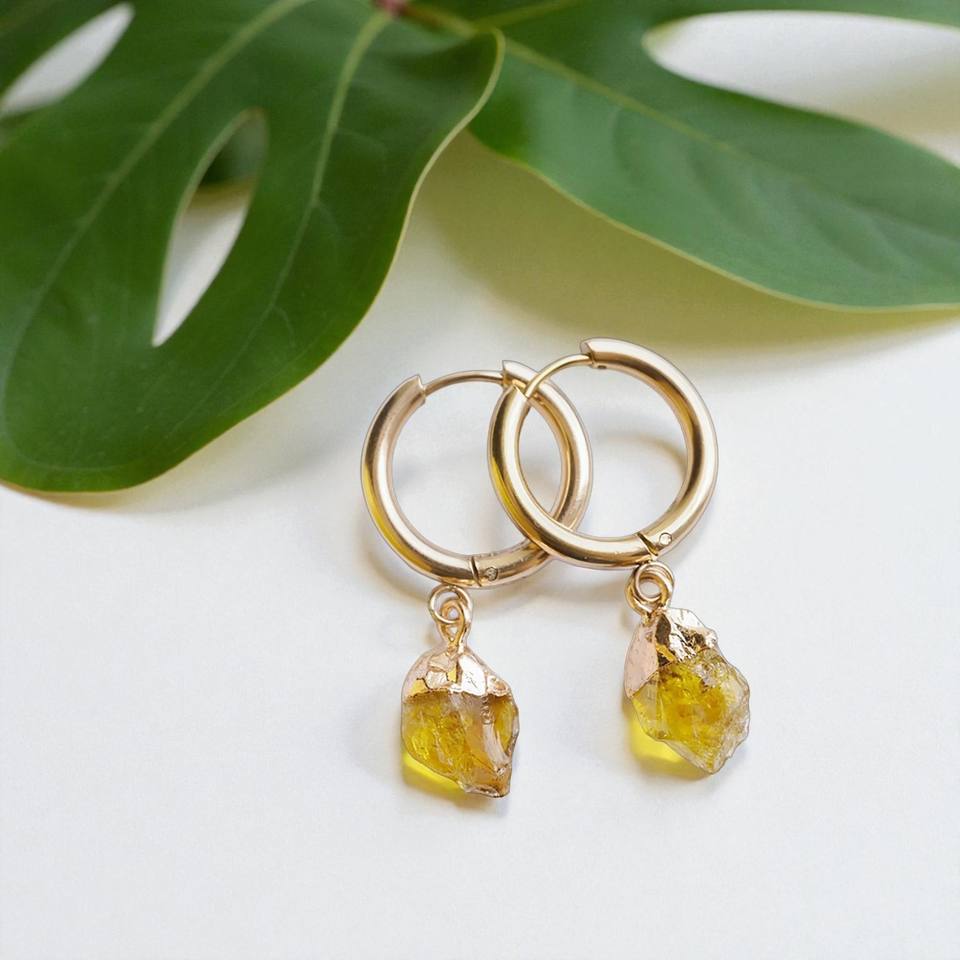 925 Silver Raw Citrine Birthstone Hoops Earrings Jewelry