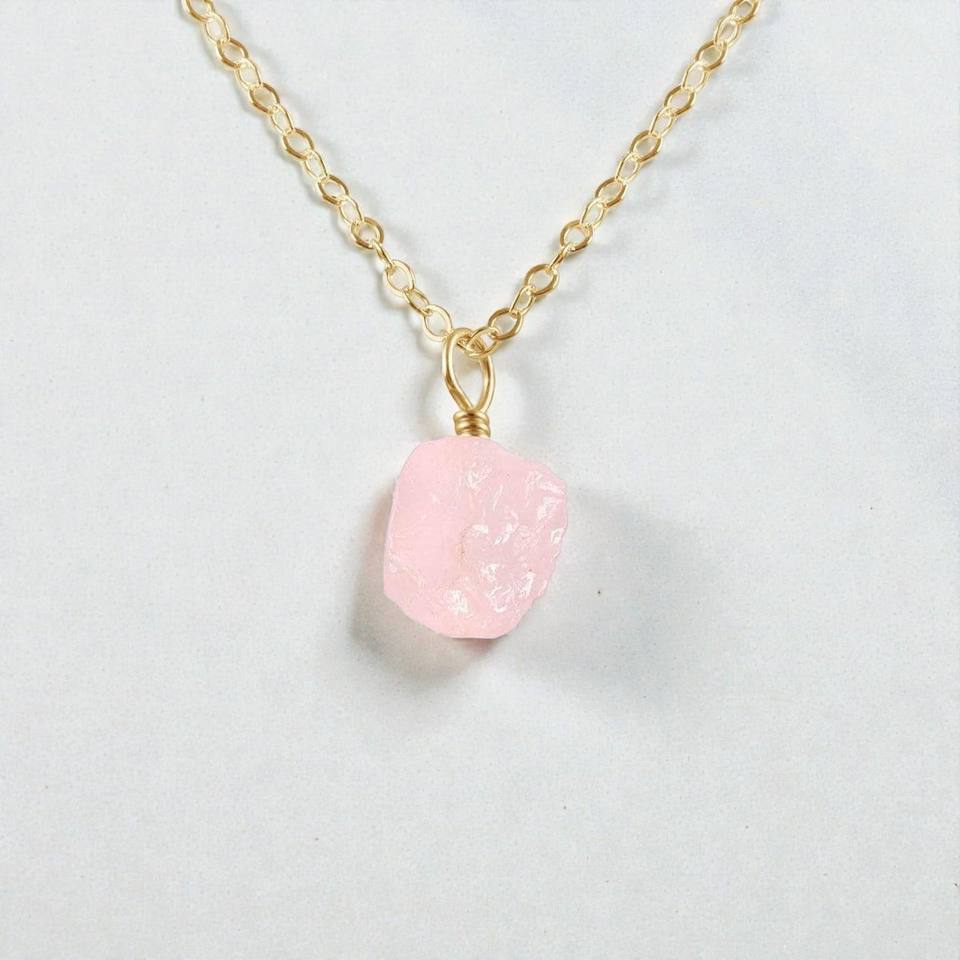 925 Silver Raw Rose Quartz Birthstone Handmade Charms Pendant Necklace