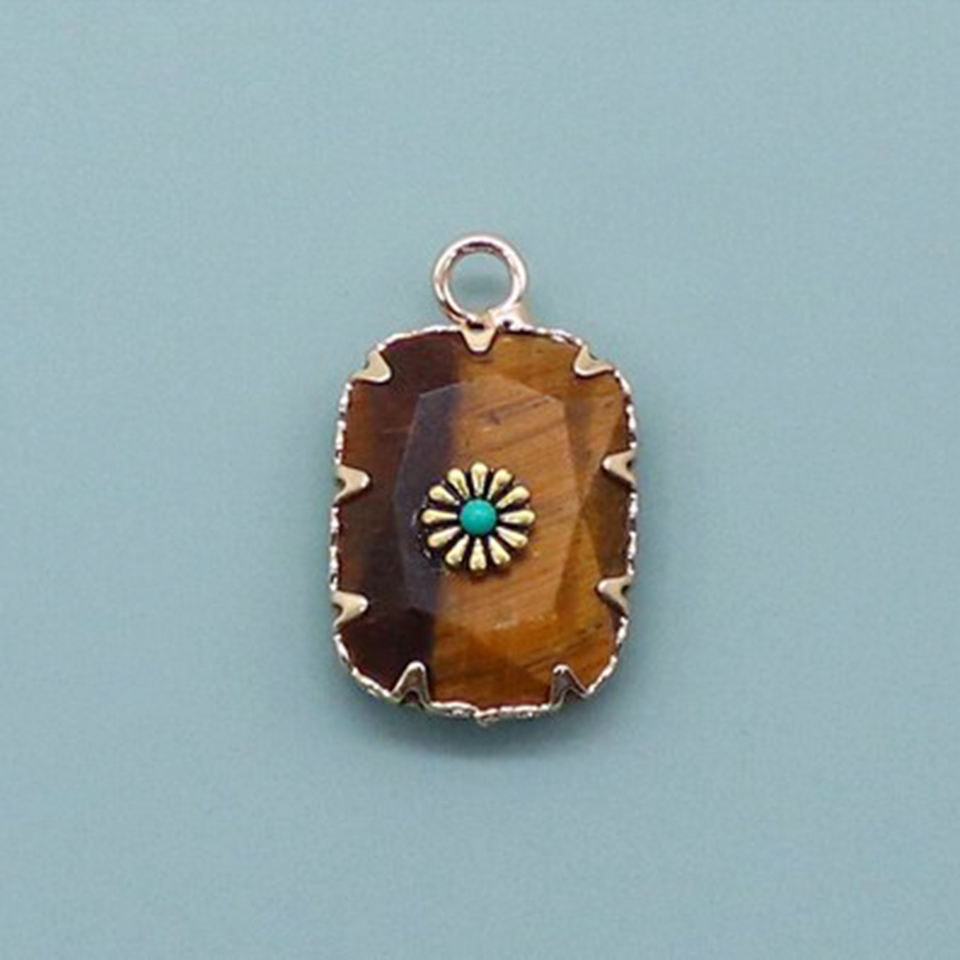 925 Silver Rectangle Shape Tiger Eye Gemstone Charm Pendant - Designer Pendant Charms