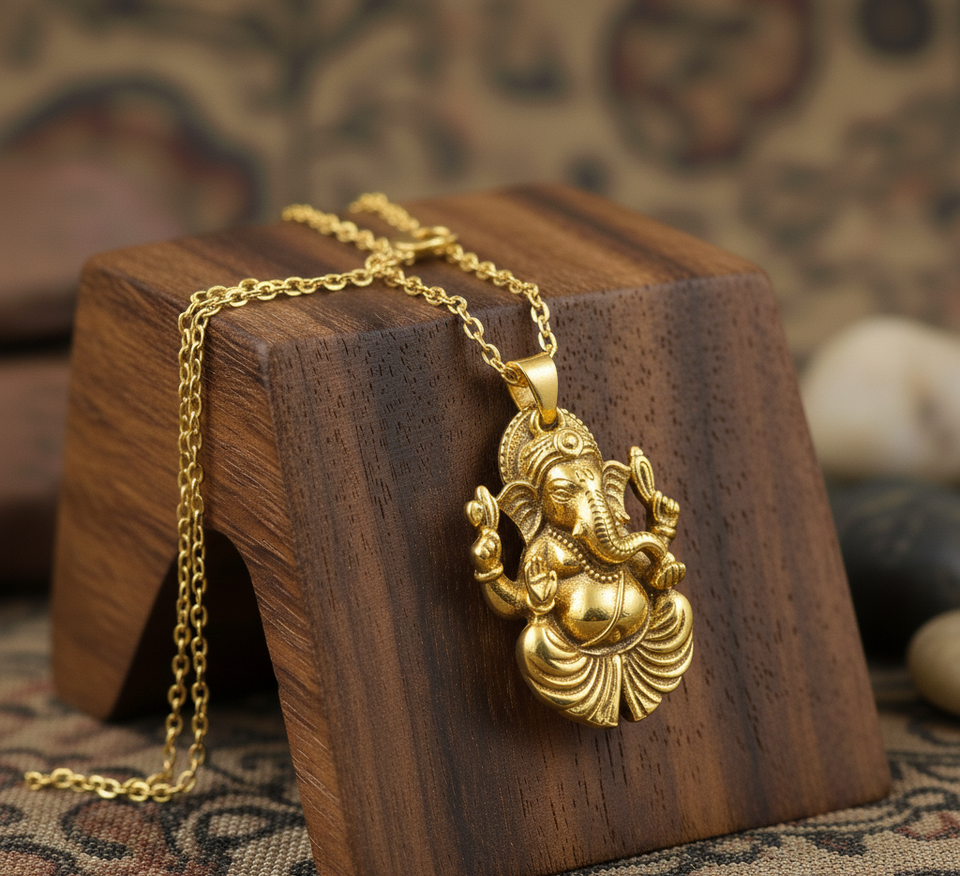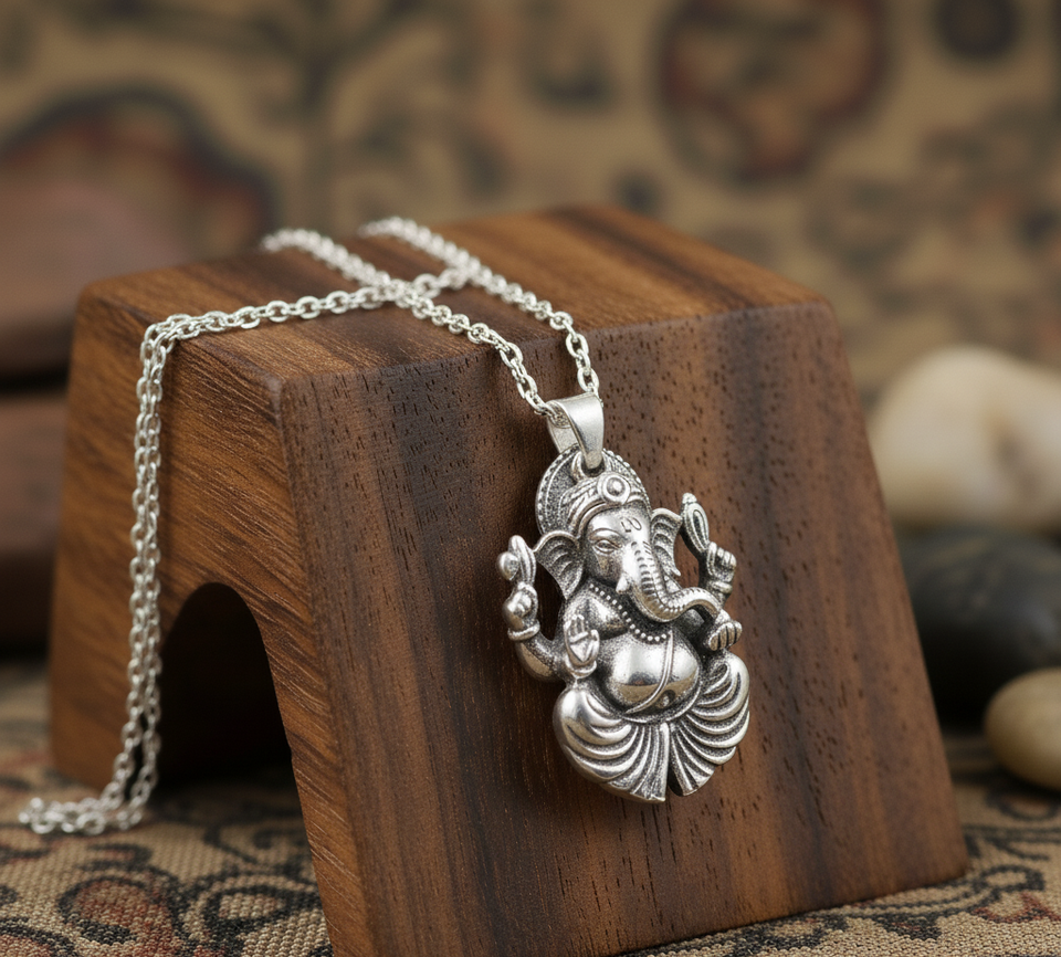 925 Silver Rhodium Link Chain Necklace with Daily Wear Ganesha Spiritual Pendant Gold Plated Trending Fashion Gift for Men Women