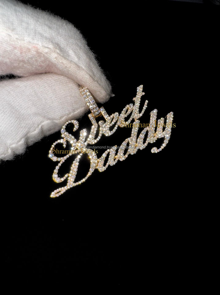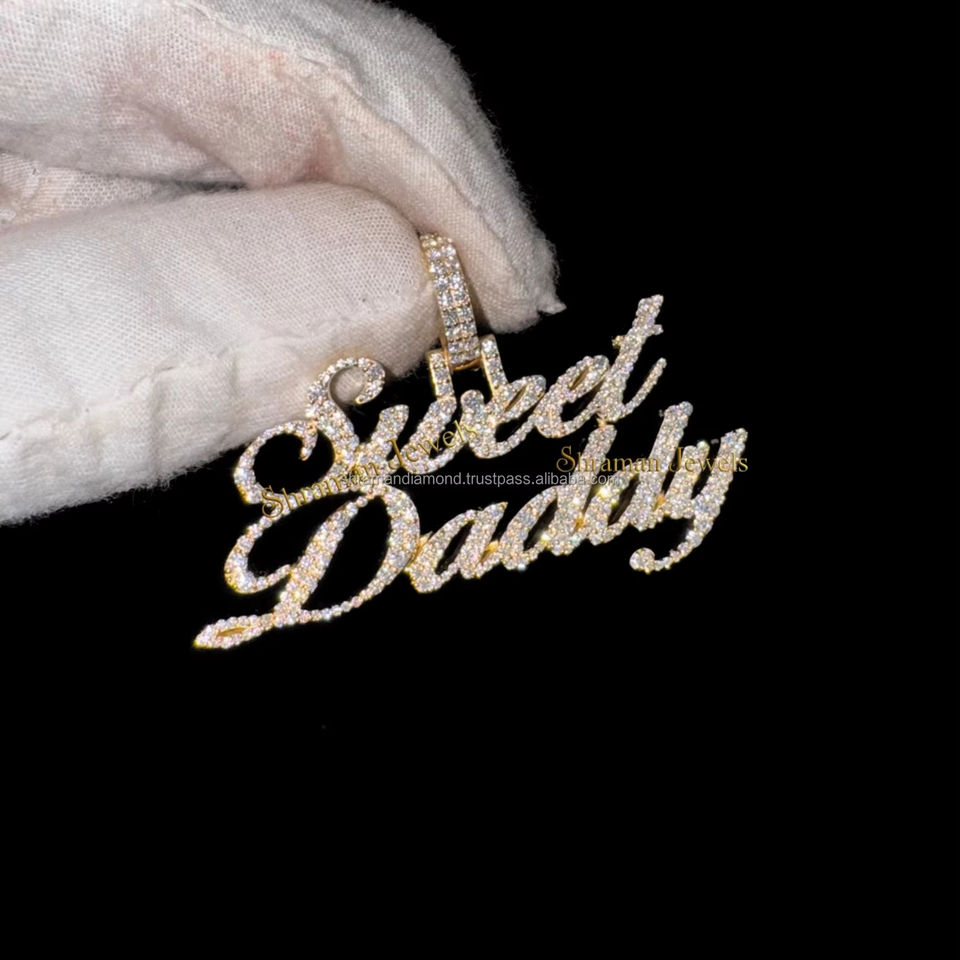 925 Silver Rhodium Plated Classic Custom Features Hip Hop Jewelry Cursive Script Necklace Iced Moissanite Diamond Fine Pendants