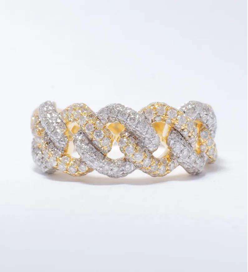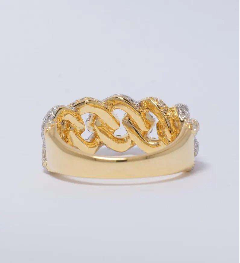 Luxury Men's Rhodium Plated Hip Hop Cuban Link Design Moissanite Accents Sparkling Bold Statement Ring