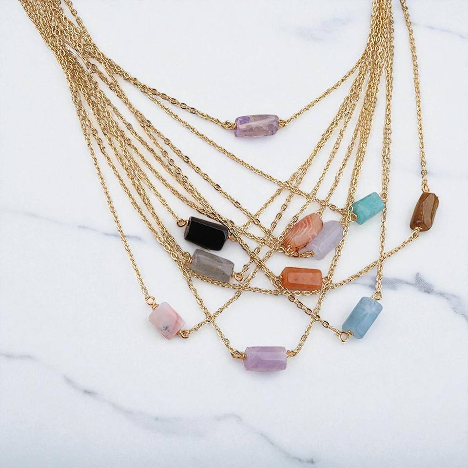 925 Silver Rough Drilled Labradorite Gemstone Necklace Chain - Handmade Birthstone Charm Necklace - Wholesale Jewelry