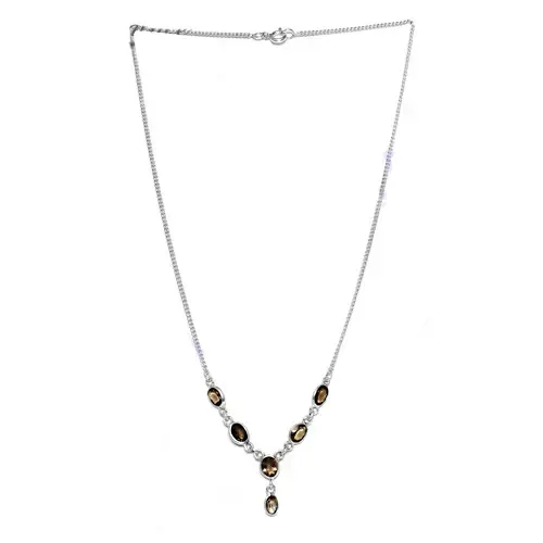 925 Silver Smoky Quartz Beaded Necklace for Women Fashionable Gemstone Jewelry
