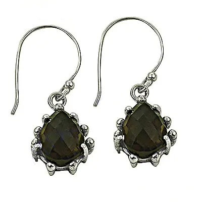 925 Silver Smoky Quartz Drop Earrings for Women Vintage White Gold Plated Freshwater Pearl Gold Plated Emerald Stone Dangle