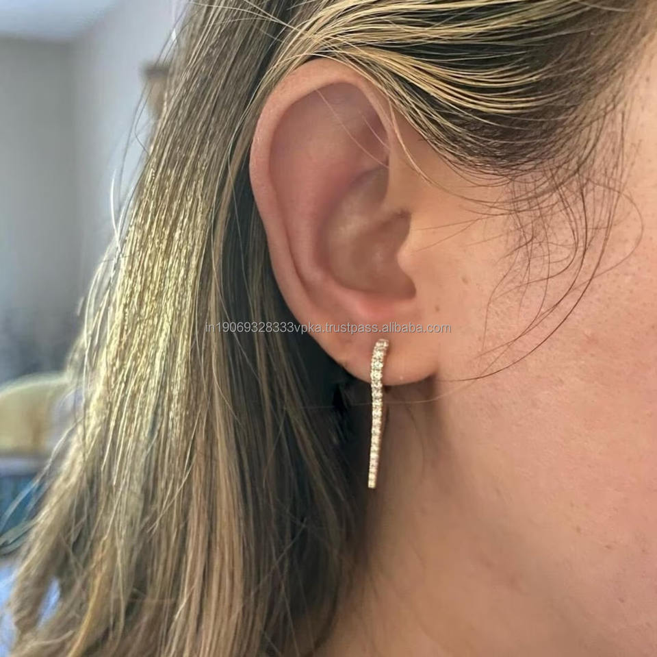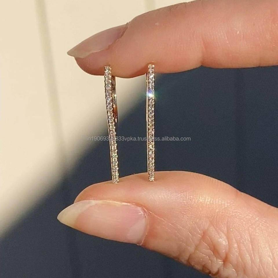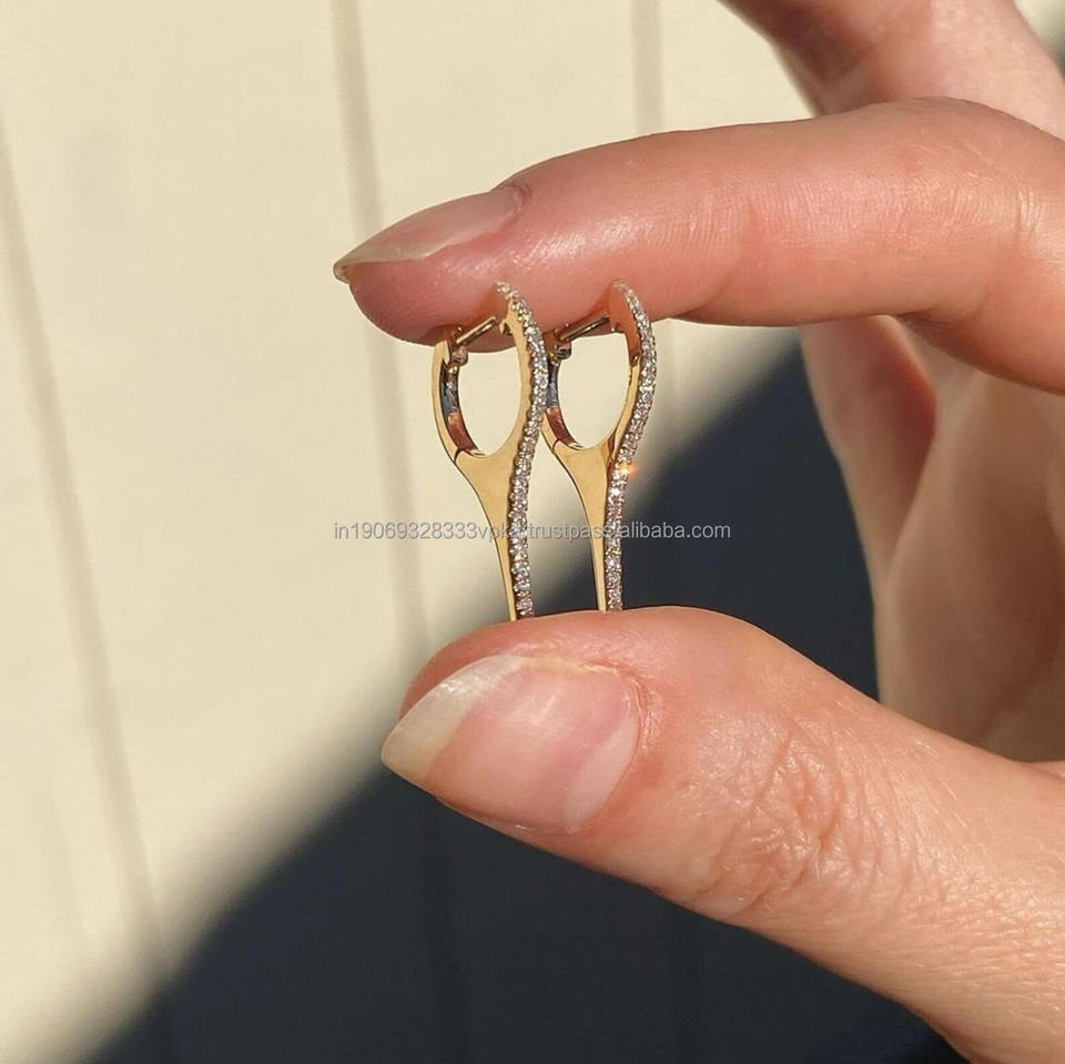 925 Silver Spike Huggie Earrings with Simulated Diamond Pave Round Cut Party Wear Clip-On Lock Huggie Hoop Fine Earings Set