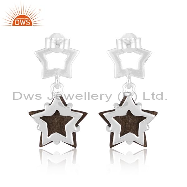 925 Silver Star Earring With Gold Sheen Obsidian Checker Gemstone Manufacture Supplier