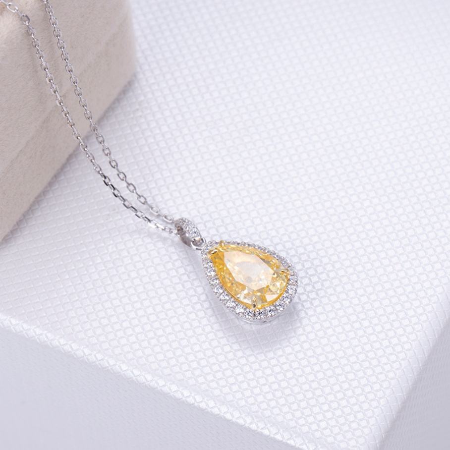 925 Silver Sterling Necklace Tear Drop Bright Yellow Carbon CZ Diamond Solid Pendant Necklace