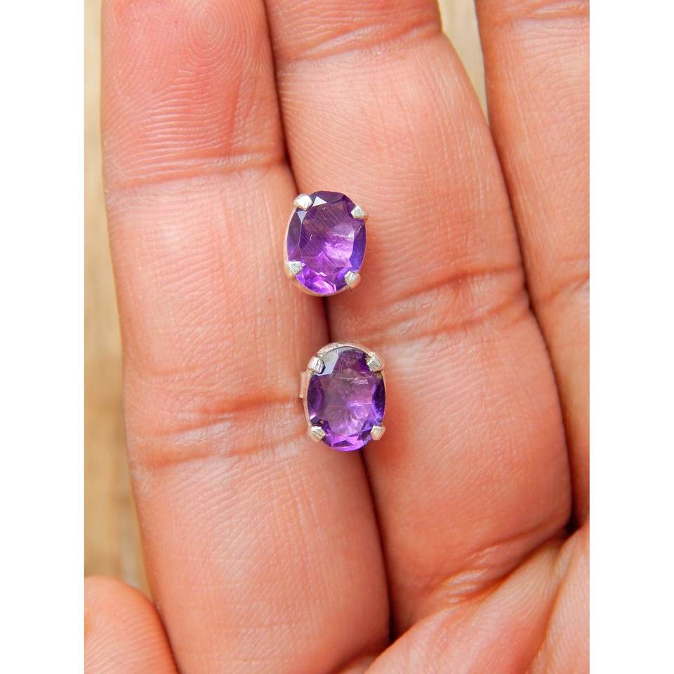 925 Silver Stud Earring with Topaz and Handmade Amethyst Elegant Gift for Her-E0066-GS